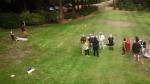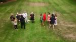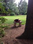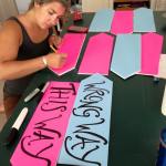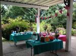 Luckily for me, I also have talented family and friends, so though we had limited time (about 3 days) in which to pull this off, with the help of my parents and my BFF, we were able to host a party where we made most of the food, all of the decorations, and entertained 20-30 people over the course of an afternoon. My mother painted the gorgeous Cheshire Cats on the cornhole boards, while my BFF made the signs directing people to the house. My father created the flower arrangements, the decorations, put the signs together, and dug holes in dirt and gravel to place them along the roadway. I live on a long, curving, forested country road, and so we had three of these signs along the way at points where people tend to get lost.
